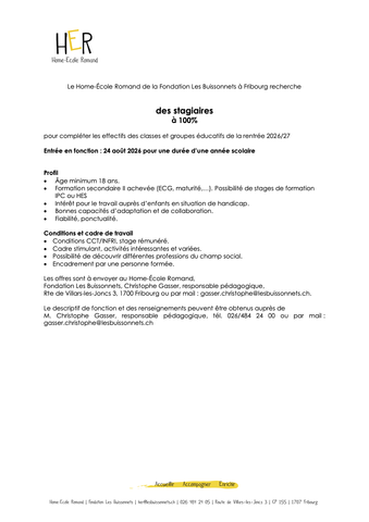 Le HER met au concours des postes de stagiaires pour l'année scolaire 2026/27