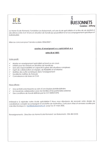 Le HER met au coucours de postes d'enseignants-tes spécialisé-es